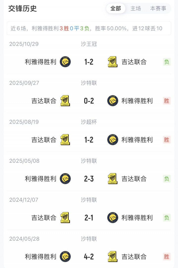 利雅得胜利暂以46分排名第三,落后榜首新月4分。吉达联合暂以34分排名第六。